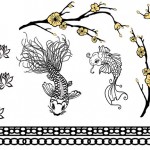 Koi, Lotus , and Cherry Blossom Tattoo Sheet -Gold