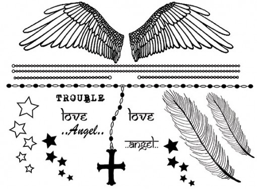 Angel Wings and Feathers Tattoo Sheet – Black
