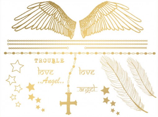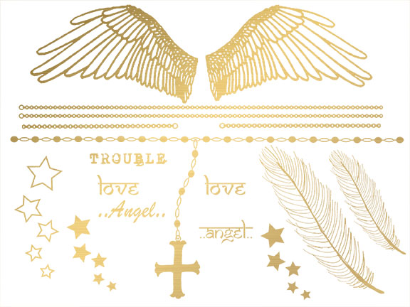 Golden angel wings, perfect to be worn on the lower back for a night out! Inspirational sayings! Be an angel! Please allow up to 4 weeks delivery for this special order item. Designed by RG and BB!